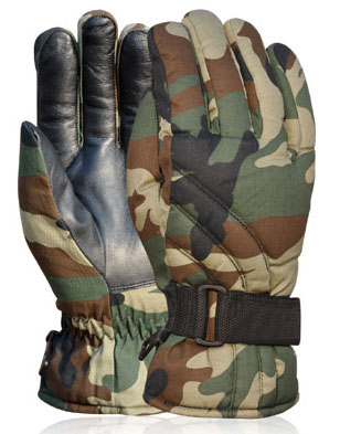 Extreme wintry weather Military Gloves made with Camouflage fabric and lined with Thermal Insulation layer (Thinsulate ) laminated with woolen fabric for cozy feeling at areas of minus temperature. Insertion of Hipora will make it windproof