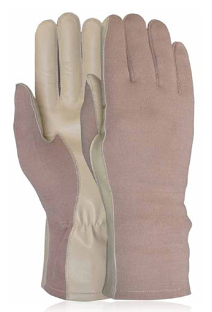 Nomex flight glove with single stitch line and front elastic for snug fitting. NOMEX has become the standard in many law enforcement and public safety agencies as it resist flame, flash, and heat up to 700 F and does not sustain fla