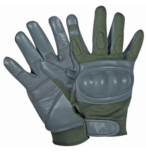 Tactical Glove with soft plastic armor, full fingers. Tactical Plastic cover over backhand for cushioning against wracks, front made of Sheep skin which is also available in Clarino (Amara) with mesh fabric Velcro wrist straps. The Velcro closure